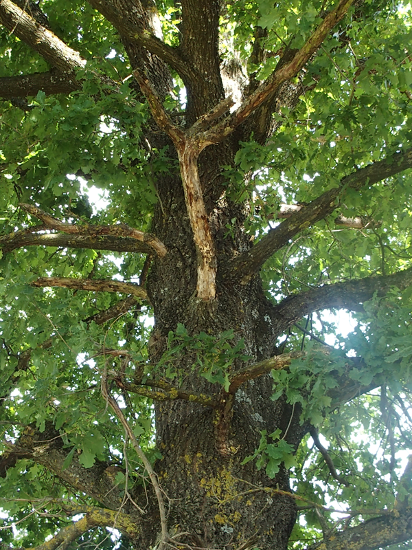 Neben dem Feldweg wuchsen mächtige Eichen, eine Reihe mit alten Streuobstbäumen war zu sehen und eine ganze Schar Gelsen war hinter mir her und versuchte mich (teilweise erfolgreich) zu stechen. „Wahrscheinlich hätten wir uns mit dem Insektenschutz nicht einsprühen sollen, sondern darin baden“, ätzte ich.