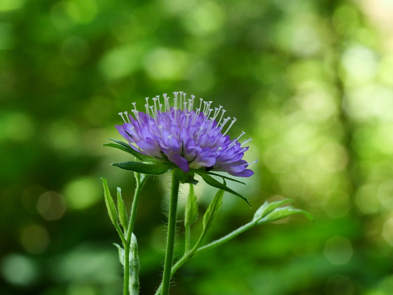 Beim Grillwirt macht der Wanderweg einen spitzen Haken, und es geht hinter den Knappenhäusern in den Wald und den Berg hinauf. Hier erfuhren wir, dass das Erz im Grün- oder Schwarzschiefer zu finden ist – jedoch nicht im Schöckelkalk. Wir suchten nicht nach Erzen, sondern bewunderten die Pflanzenvielfalt am Weg: Wald-Geißbart, Mandelblättrige Wolfsmilch, Himbeeren, Akelei, Teufelskralle und eine gelbe Distel, die Gregi später als „Klebkratzdistel“ identifizierte.