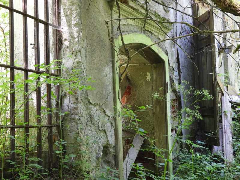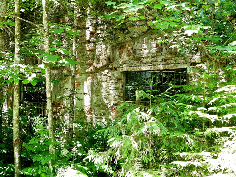 Wir folgten der schmalen Asphaltstraße entlang der Raab weiter. Gregi hatte nur noch Augen für die hübschen weiß-orangefarbenen Apollofalter und übersah dabei den geschichtsträchtigen Pulverturm. Ein wunderbarer „Lost Place“ erwartete uns anschließend: die ehemalige Erzaufbereitungsanlage. Sie ist beeindruckend groß, und auf dem Turm sind noch die Initialen „HB“ (Haufenreither Bergbau) zu erkennen. Hier wurde das Gestein sortiert; das taube Material brachte man mit einer Feldbahn zu den Halden.