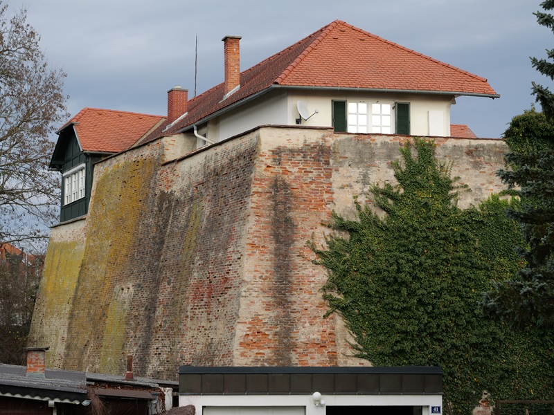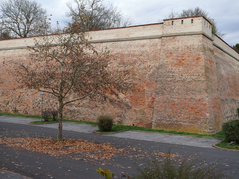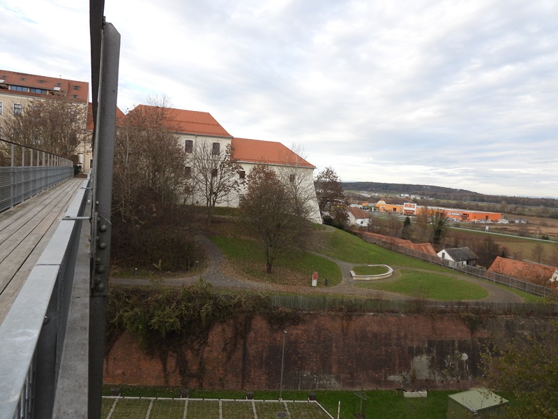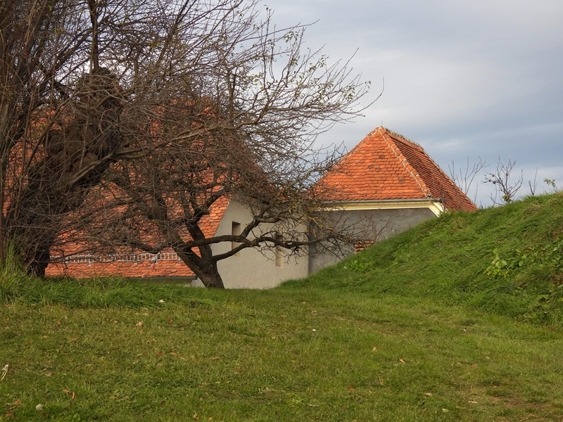 Die mittelalterliche Stadt, welche um 1215 ausgebaut wurde, war von einer Stadtmauer umgeben. Im 16. Jahrhundert war diese Wehranlage nicht mehr sicher genug. Vom Osten drohte immer wieder Gefahr, also wurde wieder „in die Hände gespukt“, und man zog eine Festung nach den Plänen des Tessiner Baumeisters Domenico dell’Allio auf. Oder zumindest eine Sparversion davon – denn das Geld war knapp. Wir erreichten die Ungarbastei mit Bunker und staunten nicht schlecht. So mächtig, wie sie vor uns stand, war ich überzeugt, dass an dieser Stelle sicherlich nicht gespart wurde.