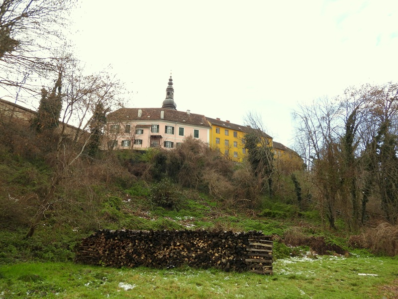 Durch das alte Grazer Tor schieben sich heute die Autos – besonders wenn in Fürstenfeld der Adventmarkt stattfindet. Wir gingen nicht durchs Tor. Der Weg führte wieder in den Graben, wo sich ein hübsches Biotop befindet. Über die Augustinerbastei erreichten wir wieder die Pfeilburg.