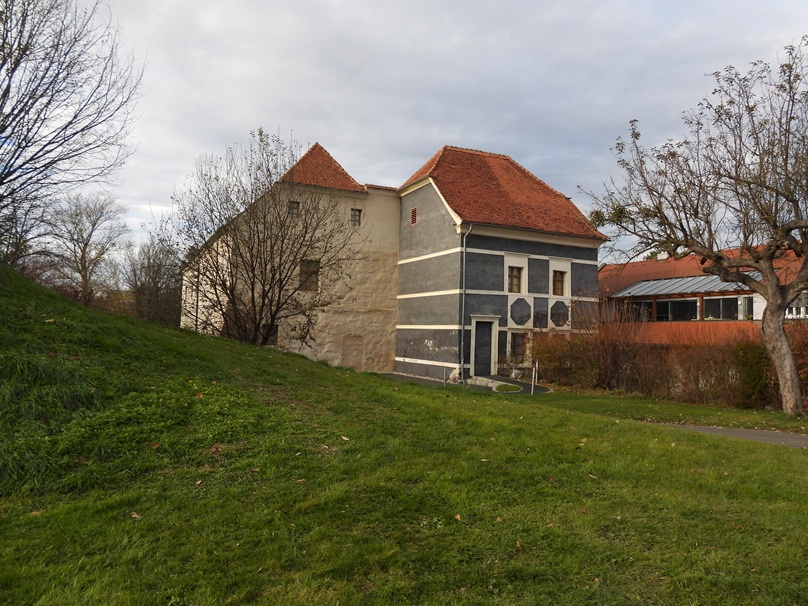 Aber zurück zur Pfeilburg. Fürstenfeld hatte früher mehrere Burgen. Die älteste war das Schloss am Stein, das wir später noch sehen würden. Doch auch die Pfeilburg hat sehr alte Bauteile zu bieten. In ihr soll noch ein Wohnturm, welcher Bestandteil der mittelalterlichen Stadtmauer war, stecken. Schwarzturm heißt dieser mittelalterliche Wohnturm und hat seinen Namen entweder davon, dass er ausgebrannt und daher schwarz war, oder weil man in ihm einmal Schwarzpulver lagerte. Die Pfeilburg ist wunderbar renoviert, präsentiert sich im dunklen Anthrazit und beherbergt Museumsräumlichkeiten. Das Tabakmuseum (in der Pfeilburg war im 17. Jahrhundert eine Tabakfabrik) sowie das Kruzitürkenmuseum. Und da wir nun schon bei den Kuruzzen und den Türken sind … wir wollten ja dem Festungsweg folgen.
