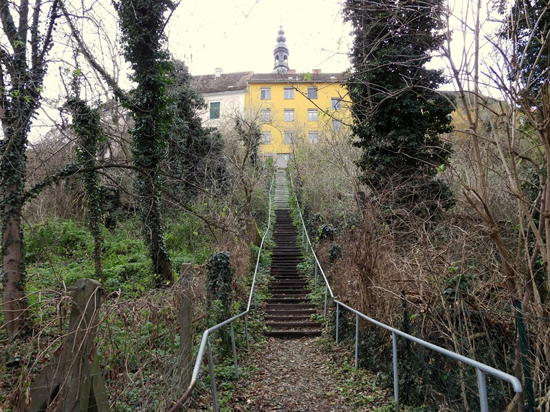 Über die Theatergasse und Santnergasse erreichten wir die Mühlbastei. Hätten wir an einer geführten Tour teilgenommen, hätten wir hier wahrscheinlich die Bunker besichtigen können. Der Grazer Platz (früher Grazer Vorstadt) war unser nächstes Ziel. 26 Häuser und das Schloss Falbenhaupt wurden im 17. Jahrhundert abgerissen, um die Stadt Fürstenfeld besser vor den Türken schützen zu können. Die Besitzer bekamen nur kärgliche Ablösen.