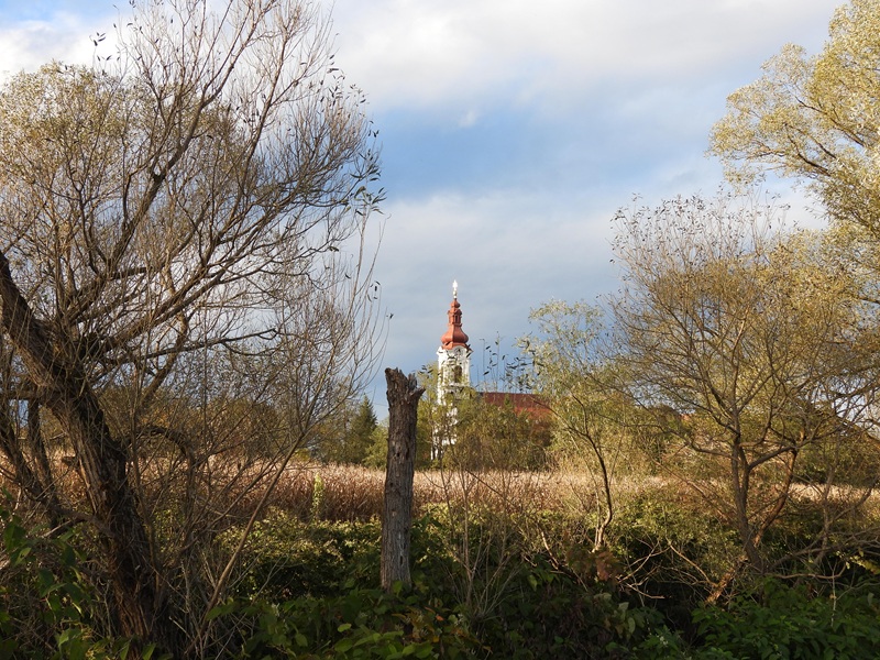 Gregi musste was Außergewöhnliches entdeckt haben … er lag in der Wiese mit einsatzbereitem Fotoapparat. Welches Insekt er denn fotografieren wolle, erkundigte ich mich. „Kein Insekt – die Kirche“, kam zur Antwort. Die Kirche ist groß und er hätte sie auch ganz kommod im Stehen fotografieren können. Wieso musste er also schon wieder eine Hose mit Grasflecken verunstalten?