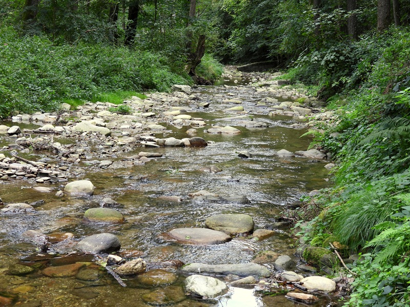 Wir wandern zwischen einem steinigen Bachlauf und einem künstlichen Wasserlauf (für eine Mühle) auf einem richtig idyllischen Wegerl zum Ort zurück, wo wir bei der Mühle die Straße erreichen. So. Jetzt sind wir am Punkt der Wanderung angelangt, wo wir bei der ersten Wanderung nicht recht wussten, wie weiter.