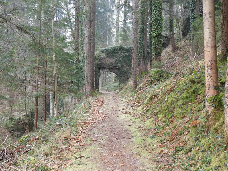 Bis kurz nach diesem zweiten Tor war ich 2021 gekommen, dann hatte ich ein Loch im Boden gefunden. Dazumal hatte ich umgedreht. Bei unserer letzten Jännerwanderung hätte ich mich wieder nicht weitergetraut – trotz der mächtigen Gemäuer dahinter, die wirklich verlockend aussahen. Doch bei Löchern in Böden bin ich halt mal etwas misstrauisch.