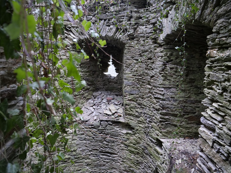 Dann kam eine Wandergruppe aus Bärnbach. Es waren sicherlich mindestens 20 Personen. Allesamt verschwanden durch das zweite Tor, um die übrigen Burgteile zu besichtigen. „Ich höre keine Hilferufe oder dergleichen“, bemerkte ich. „Sollen wir uns also auch trauen?“ Gregi fotografierte bereits die Reste des stattlichen Palais. Also machte ich mich auch daran, dieses Bauwerk aus der Gotik weiter zu erkunden. Um 1300 waren die ersten Teile von Neu-Leonroth errichtet worden, um die neue Straße, die auf die Pack führte, zu sichern. Davor hatte es eine andere Wegführung gegeben, für diese war Alt-Leonroth von den Herren von Krems errichtet worden. Ab 1196 hatte sich Otto von Krems das erste Mal auch „von Levenrode“ genannt.