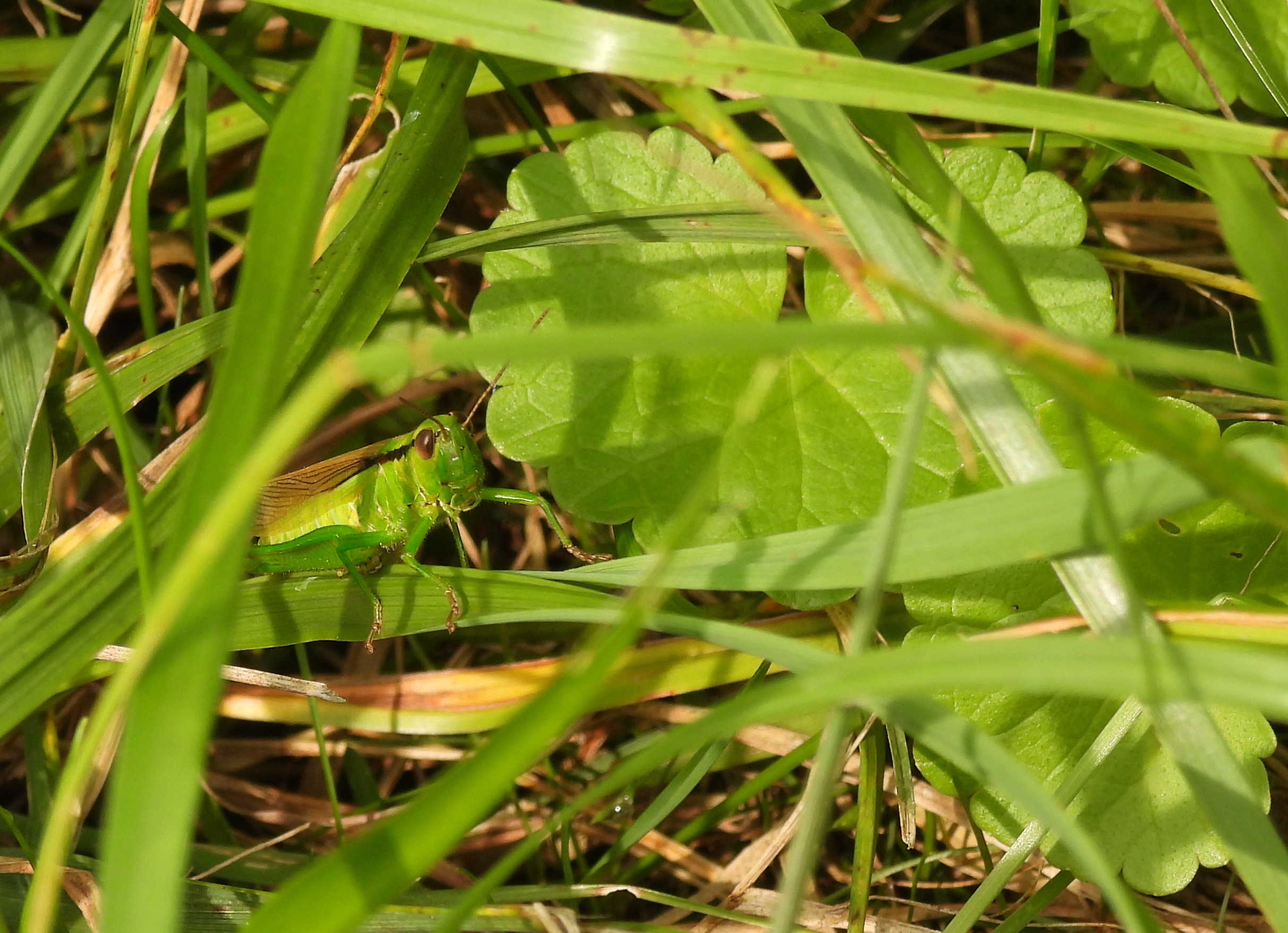 Der Weg ist gut beschildert, und man wandert bequem dahin. Ein Stichweg neben einem wasserführenden Graben führt zu einem besonderen Beobachtungsplätzchen. Als wir auf diesem Stichweg gingen, brach bei den Heuschrecken Panik aus. Noch nie in meinem Leben habe ich eine so große Dichte an Heuschreckenarten in verschiedenen Farben und Größen gesehen. Alle hüpften vor unseren Füßen kreuz und quer. Wir gingen langsam und vorsichtig, damit die kleinen Tierchen die Möglichkeit hatten, sich in Sicherheit zu bringen.