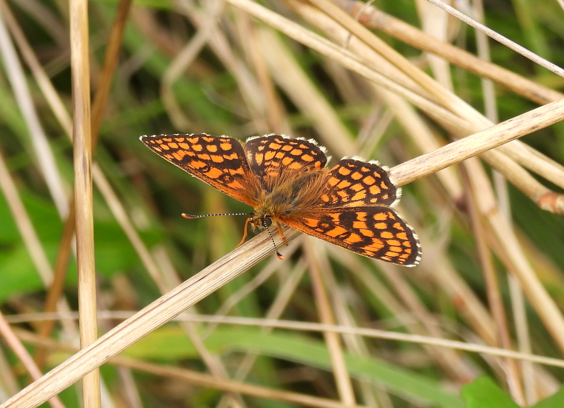 Da gab es eine feuchte Stelle auf dem Weg, dieser Fleck war ein richtiger Treffpunkt für die Scheckenfalter. Auch Libellen fühlten sich in diesem Bereich besonders wohl. 28 Libellenarten sollen im Güssinger Ramsar-Gebiet vorkommen.