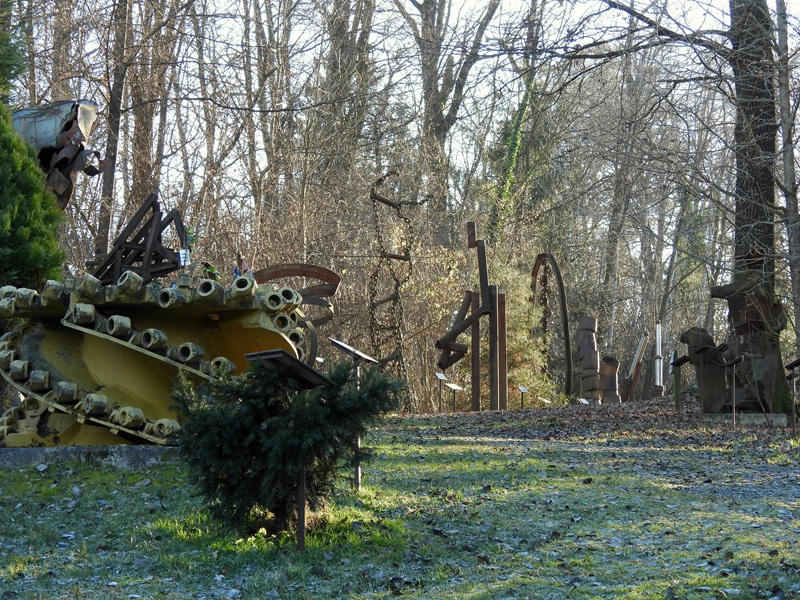Hinter dem Parkplatz von Obervoitsberg gibt es einen Naschgarten. Geht man rechts neben diesem Garten vorbei, kann man allerhand Kunstwerke aus Metall entdecken. Bei den Hochbeeten führt der Weg bergab. Neben dem Bogenparcours geht es dann zum ehemaligen Kohlenbergbau Zangtal. Von 1880 bis 1989 wurden hier 27,5 Millionen Tonnen Braunkohle abgebaut. Benannt wurde das Bergwerk nach dem Besitzer August Zang. August Zang war ein vielseitig interessierter Mann. Er war ein ehemaliger Offizier, gründete eine Zeitung, „Die Presse“, und war nebenher auch noch ein Bankier. Im ehemaligen Bergwerksgelände kann man noch Fördermaschinen bestaunen. Besonders „Leopold“, ein 560 Tonnen schwerer Schaufelradbagger, beeindruckt durch seine unglaubliche Größe. Das Förderband, das zum Teil noch zu sehen ist, stammte von der Gleisdorfer Firma Binder. 1986 wurde Leopold in Betrieb genommen … leider schloss das Bergwerk bereits 1989.