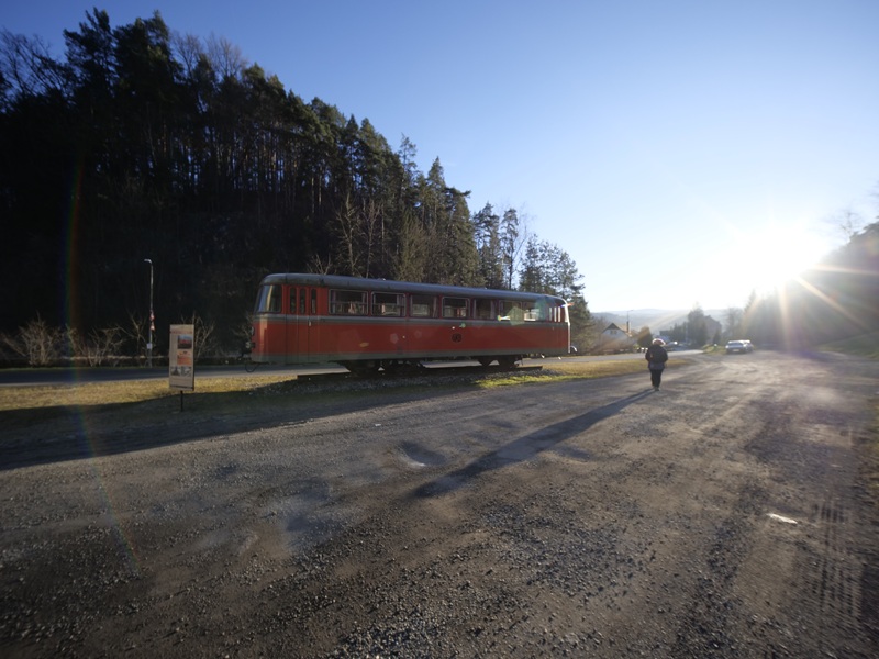 An einem ehemaligen Wagon der GKB vorbei wanderten wir neben der Straße nach Voitsberg zurück. Auch wenn wir keine extrem weite Wanderung absolviert und die Tage davor ausgiebig Süßes verzehrt hatten, gönnten wir uns im Stadtcafé am Hauptplatz einen Cappuccino mit Tiramisu.